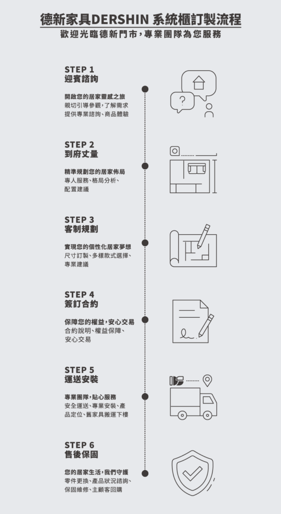 德新家具44年在地品牌,擁有專業的團隊,從丈量、討論、設計、諮詢、運送,陪伴你完整家的樣貌。