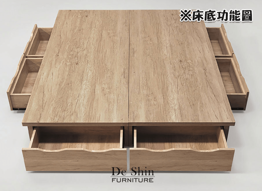 雙人抽屜床架 | 方便收納及分類小型物品 | 無法收納大型物品 | 放置自家長年使用,幫助分類多種收納物品。 |